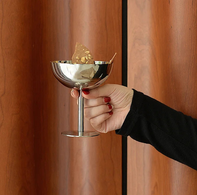 Korean Simple Stainless Steel Metal Ddry Fruit Bread Cup Ice Cream Desserts Cup Decorated With High Foot Silver Food Bowl