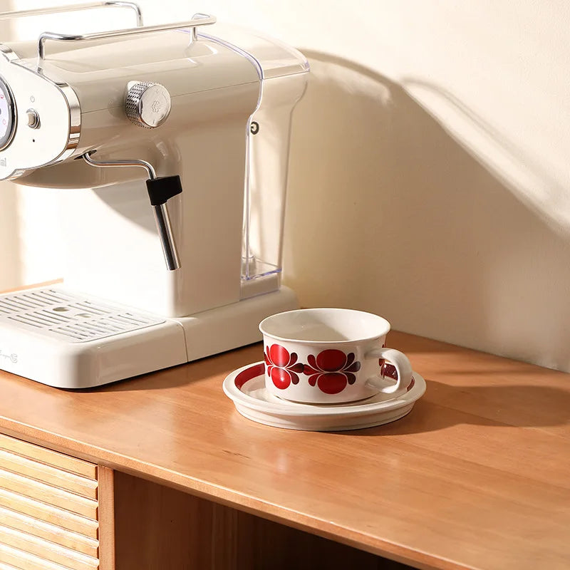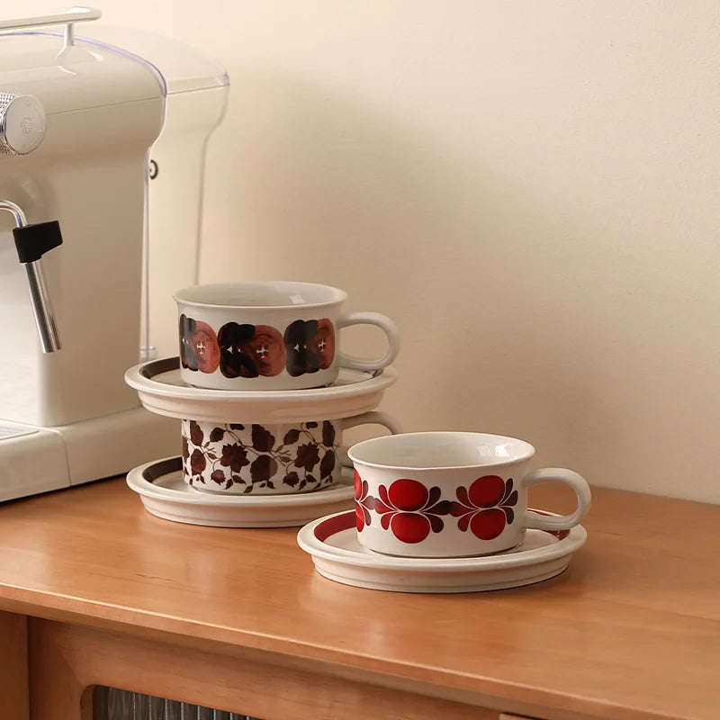 Vintage coffee cups and saucers, hand-painted floral ceramic set, coffee cup latte latte flower